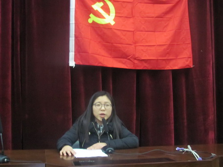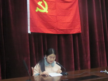 在雄壮的《国际歌》中,法政学院党委书记周增玉宣布大会开始,张兆平宣读了新党员名单并带领新党员面向党旗庄严宣誓。张玲代表新党员发表了宣誓感言,张雅欣代表积极分子发言。周增玉书记对新党员提出了三项要求,勉励大家牢记党的宗旨,严格要求自己,努力学习、切实发挥模范带头作用。大会在庄严的国歌声中圆满结束。