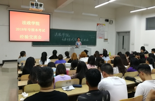 2018年5月14日晚,法政学院在公共教学楼508教室举办了专接本考试经验交流会。学管办主任吴明君老师、辅导员李智老师、李琢斐老师、2016级、2017级专科班全体同学参加了本次交流会。
