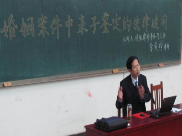 2013年12月9日星期一下午,我校客座教授、河北领航律师事务所主任李寅岭律师来到邢台学院,与我院法学专业师生共聚一堂,针对当前婚姻案件中亲子鉴定的法律适用问题进行了专题讲座。